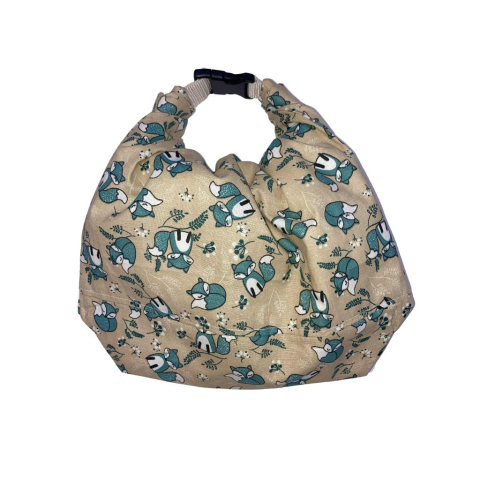 Ez a bézs alapon kék rókás mintás pamut füles zsák játékos és barátságos hangulatot visz a konyhába. PUL bélése gondoskodik arról, hogy a kenyér és péksütemények hosszabb ideig frissek maradjanak. Higiénikus, mosógépben is mosható, strapabíró anyagból készült, így hosszú távon is megbízható társ a mindennapokban. Csatos zárása egyszerű és biztonságos használatot biztosít. Nemcsak kenyértárolásra, hanem uzsonnás- vagy tárolózsákként is ideális.