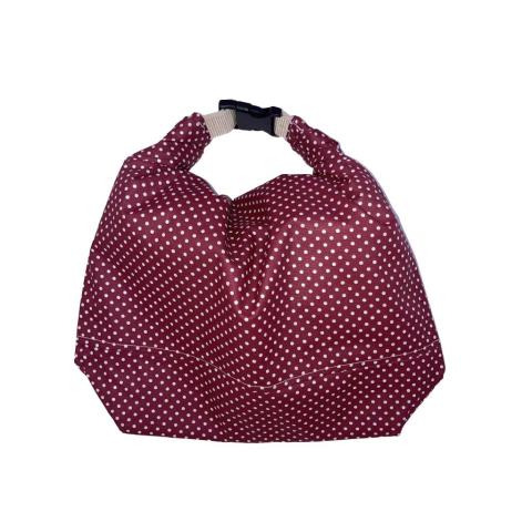 1 kép MK Bea Füles zsák – bordó alapon fehér pöttyös pamut PUL béléssel