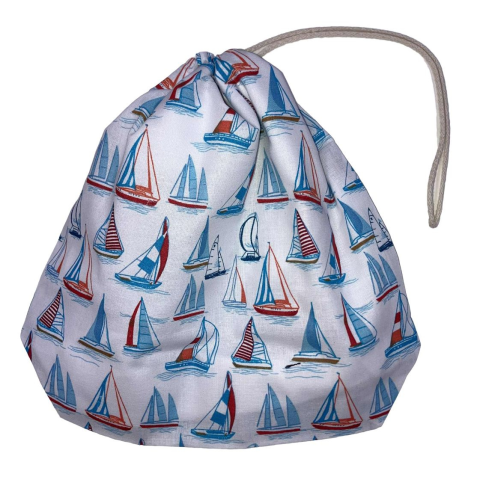 Ez a vitorlás mintás kis cipószsák vidám és egyedi megoldást nyújt a pékáruk tárolására. Mérete ideális kisebb cipókhoz, zsemlékhez vagy kiflikhez. Strapabíró pamut anyagból készült, amely mosható és újra felhasználható, így környezetbarát alternatívát kínál az egyszer használatos műanyag tasakok helyett. A behúzózár biztosítja a könnyű nyitást és zárást, miközben frissen tartja a belehelyezett pékárut. Ideális választás otthonra, piknikhez vag