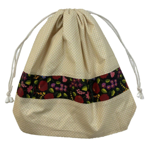 1 kép MK Bea Nagy cipós zsák – bézs alapon fehér pöttyös, virágmintás szegéllyel