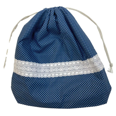 1 kép MK Bea Nagy cipós zsák – kék pöttyös csipkebetéttel