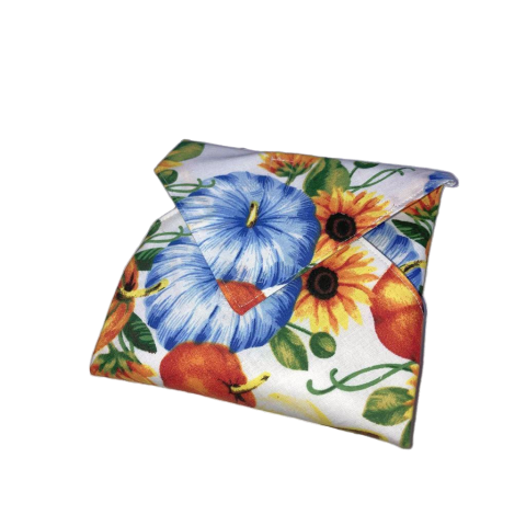 Ez a színes, tökös-virágos mintával készült újraszalvéta igazi őszi hangulatot idéz. Szendvicsek, pékáruk vagy akár gyümölcsök csomagolására is kiváló választás, miközben segít elkerülni az egyszer használatos csomagolóanyagokat. A pamut külső és a PUL bélés biztosítja az ételek frissességét, és megakadályozza a penészedést. Könnyen tisztítható, akár nedves ruhával áttörölve, akár mosógépben. Tépőzáras kialakítása miatt egyszerűen kezelhe