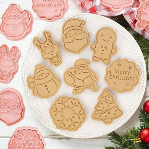 3D Karácsonyi süteménykiszúró és nyomda készlet 8 + 8 darab