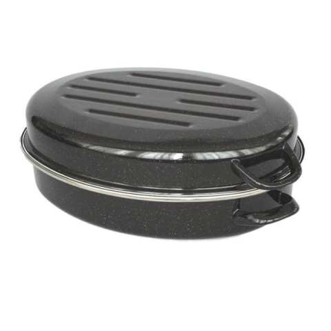 Zománcos ovális, alacsony bonyhádi kacsasütő, 2 részes