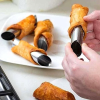 Használata: A leveles tésztát vékonyra nyújtjuk, 1 cm-es csíkokat vágunk és a mini tekercsre felcsavarjuk úgy, hogy a csíkok szélei fedjék egymást. Úgy helyezzük a sütőlemezre, hogy a végek alulra kerüljenek. Forró sütőben, erős lángon pirosra sütjük. Még melegen lehúzzuk a formákat úgy, hogy tenyerünkkel átfogjuk a tekercset és másik kezünkkel a formát megcsavarva a tésztából kihúzzuk. A tekercset kihűtjük, és sajtos besamellel /
