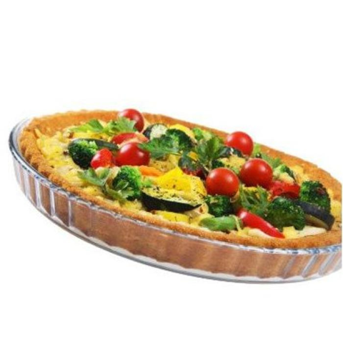 Pizzasütő / pitesütő forma 28 x 4 cm, mechanikus és hőhatásokkal szemben rendkívül ellenálló kemény boroszilikát üvegből készül. (hőállóság +220 / -12 °C).