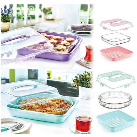 A műanyag fedeles felszolgáló tálca torták és más finomságok szállítására és tárolására alkalmas.