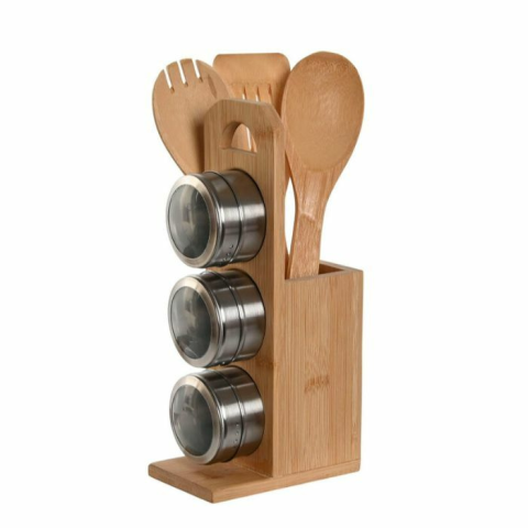 Mágneses fűszertartó, bambusz eszköztartó szett 7 részes
