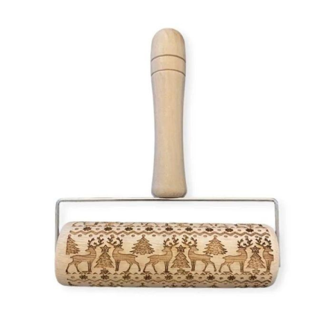 Rénszarvas mintás nyeles sodrófa, tészta,fondant,keksz dekorálásához