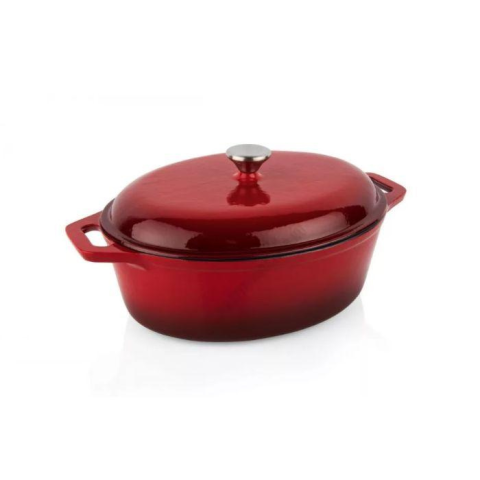 Fedezd fel az örök klasszikus ízeket ezzel a piros zománcos öntöttvas kacsasütővel! Az 36 cm átmérőjű és 8.5 literes űrtartalmú sütő ideális választás minden otthoni szakács számára. A piros fedőgomb nemcsak praktikus, hanem még stílusos is, és könnyedén felismerhetővé teszi a konyhádban. Az öntöttvas kiváló hőelosztása segít abban, hogy ételeid tökéletesen átsüljenek, és megőrizzék az ízeket. A zománcos felület könnyen tisz