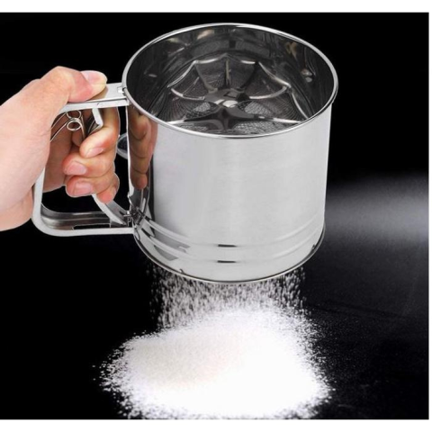 Nagy kézi lisztszita, mely alkalmas porcukor szórására is.