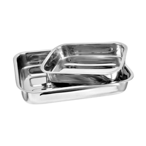 Elegáns és praktikus rozsdamentes tepsi szett, mely ideális bármilyen konyhai feladathoz. A készlet tartalmaz egy kisebb és egy nagyobb méretű tepsit, melyek rozsdamentes acélból készültek, így hosszú élettartamot biztosítanak.