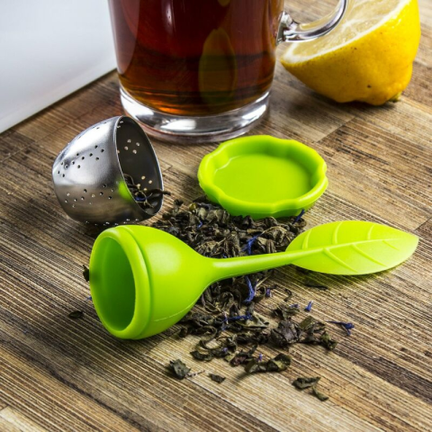 A készlet tartalma: 1 db teatojás tartó, 1 db teatojás zöld színben