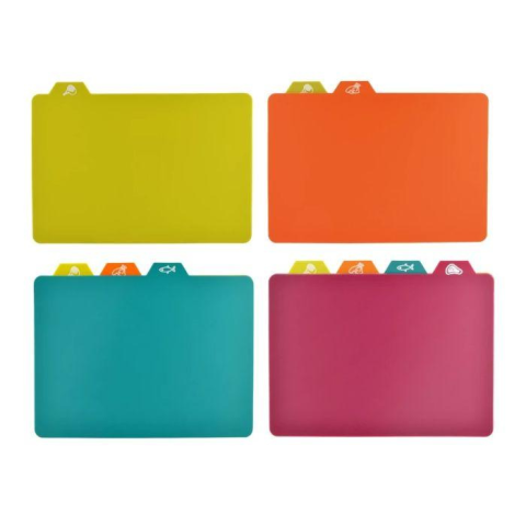 4 különböző színű vágólap, élelmiszer szimbólummal megjelölve.