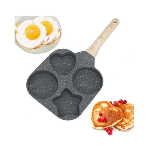 A Tojássütő serpenyő 4 részes ideális választás a reggeli tojásételek készítéséhez. A tapadásmentes bevonatnak köszönhetően könnyedén sütődnek benne a tojások anélkül, hogy azok ráragadnának. Ez a serpenyő 4 tojás egyszerre való elkészítésére alkalmas, így gyorsan és egyszerűen elkészítheted a család reggelijét. A kör, szív és csillag formájú tojások még különlegesebbé teszik az étkezést.