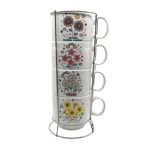 1 kép MK Home Virágmintás csészeszett, állvánnyal 4+1 darab