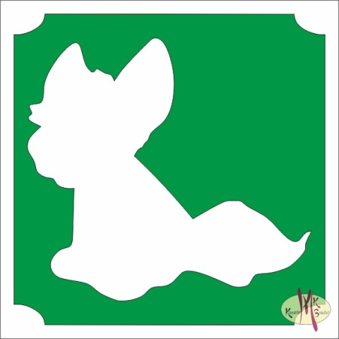 5x5 cm-es Csillám tetoválás sablon - Vuk A sablon három rétegből áll, mely hennafestésre, arcfestésre, csillámfestésre és csillámtetoválásra is alkalmas. A rétegek: - a matrica hordozója (fehér színű) - maga az öntapadós matrica (színes színű) - app