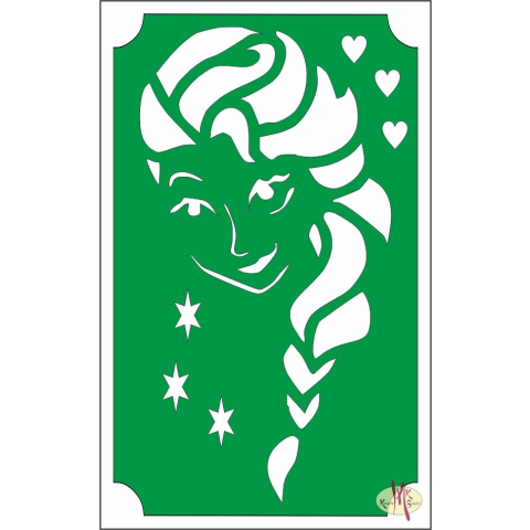 Csillámtetoválás sablon - Elsa 8x5 cm-es A sablon három rétegből áll, mely hennafestésre, arcfestésre, csillámfestésre és csillámtetoválásra is alkalmas. A rétegek: - a matrica hordozója (fehér színű) - maga az öntapadós matrica (színes színű) - ap