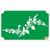 Jellemzői: Csillámtetoválás festő sablon, indás virágokminta. Méret: bruttó 8x5cm (körbe 2-2 mm keret) A sablon három rétegből áll, mely hennafestésre, arc és testfestésre, csillámtetoválásra, textil és üvegfestéshez is alkalmas. A rétegek: - a matrica
