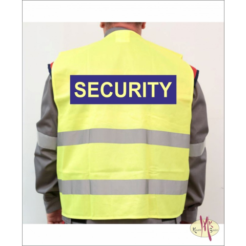 Termék jellemzői: Jólláthatósági biztonsági mellény SECURITY, RENDEZŐ felirattal. 120 g/m2 vastag, szellőző 100% poliészter alapanyag fluo citrom színben két, 5 cm széles, vízszintes fényvisszaverő keresztcsík nagyon széles méretválaszték az adott mérete