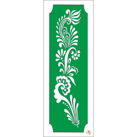 Body Deco Öntapadó Henna festősablon 1-es minta Mérete: 13 cm x 5,2 cm. A sablon két rétegből áll: - a matrica hordozója (fehér színű) - maga az öntapadós matrica (színes színű) Henna testfestő sablonokkal, mindenféle szaktudás nélkül, igényes henna mintá