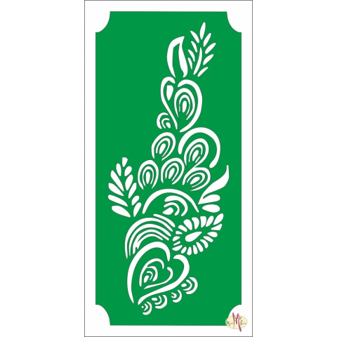 Body Deco Öntapadó Henna festősablon 24-es minta Mérete: 10 cm x 5,2 cm. A sablon két rétegből áll: - a matrica hordozója (fehér színű) - maga az öntapadós matrica (színes színű) Henna testfestő sablonokkal, mindenféle szaktudás nélkül, igényes henna mint