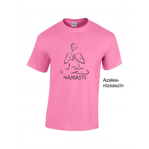 Namaste kereknyakú pamut póló 100% pamut, uniszex póló Jóga mintával. körkötött, környakas, rövid ujjú anyaga 100% pamut 185 g/m2 (175 gr/m2 fehér) S-3XL méretekig választható varrás nélküli, duplán tűzött nyakkivágás válltól-vállig pántos kitéphető c