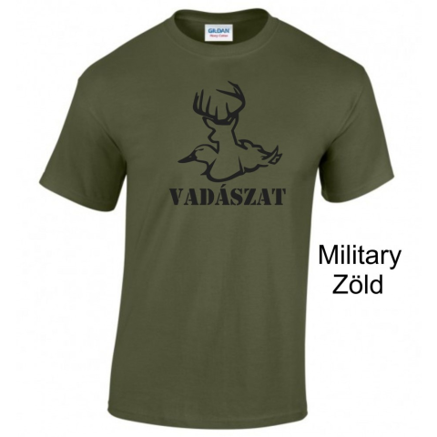 körkötött, környakas, rövid ujjú uniszex póló Vadász témában anyaga 100% pamut 185 g/m2 (175 gr/m2 fehér) S-3XL méretekig választható varrás nélküli, duplán tűzött nyakkivágás válltól-vállig pántos kitéphető címke gyűrődésmentesítő behajtás 10 színben