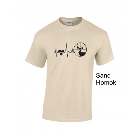 körkötött, környakas, rövid ujjú uniszex póló Vadászat témában anyaga 100% pamut 185 g/m2 (175 gr/m2 fehér) S-3XL méretekig választható varrás nélküli, duplán tűzött nyakkivágás válltól-vállig pántos kitéphető címke gyűrődésmentesítő behajtás 10 színbe