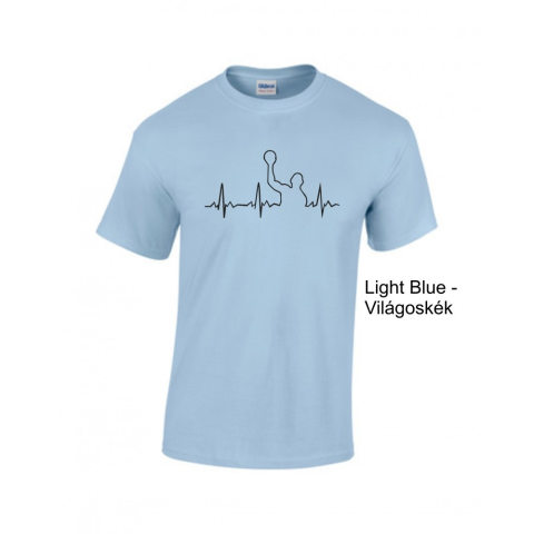 körkötött, környakas, rövid ujjú uniszex póló Vízilabda témában anyaga 100% pamut 185 g/m2 (175 gr/m2 fehér) S-3XL méretekig választható varrás nélküli, duplán tűzött nyakkivágás válltól-vállig pántos kitéphető címke gyűrődésmentesítő behajtás 10 színb