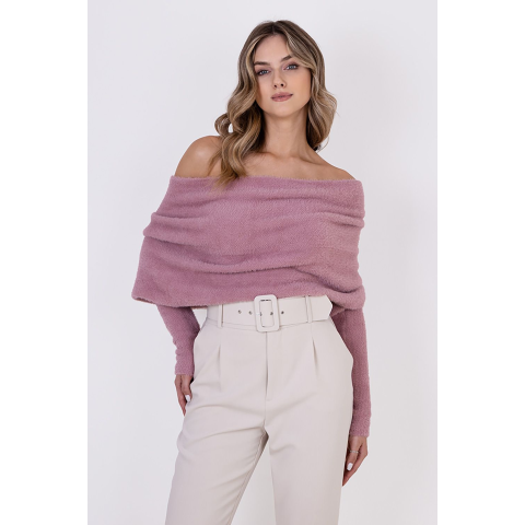 Pulóver Mkm MM-187204. Színe: Rózsaszín Csodálatosan puha, szálcsiszolt fonalból készült pulóver etolo, amely elegáns kiegészítője lesz az őszi/téli ruhatárának. Hordja hosszú ujjú borítópulóverként, csábító mély dekoltázzsal, vagy kössön csomókat az ujjakra, és varázsoljon belőle praktikus kendőt. Polyamid 100 % MéretEgész hossz L/XL180 cmS/M150 cm DP-MM-187204