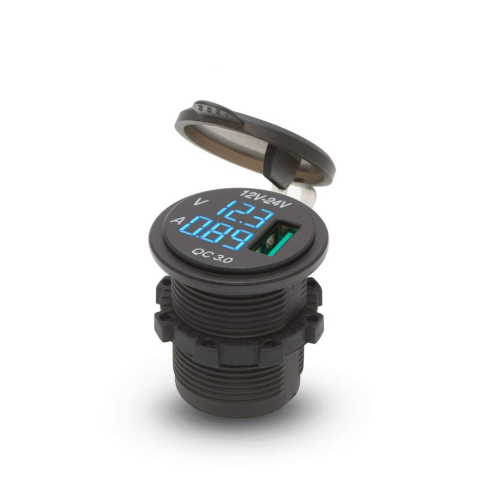 Termékjellemzők: Tápfeszültség: 12/24V USB töltési mód: QC 3.0 (több lépcsős gyors töltés amelyik eszköz támogatja), kompatibilis a normál 5V USB szabványal 2.1A max töltőáram Beépítés: furatba 27,3 mm, menetes anyával rögzül Méretek: 36,7 x 54,7 csatlak