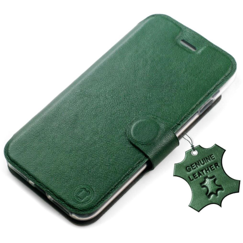 Mobiwear Apple iPhone 13 Mini zöld bőr flip tok - L_GRS (5903516900848)