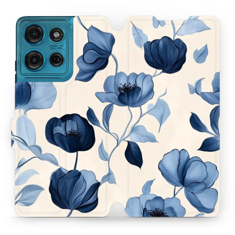 Mobiwear Motorola Moto G75 5G flip tok - kék virágos (5906511907256)
