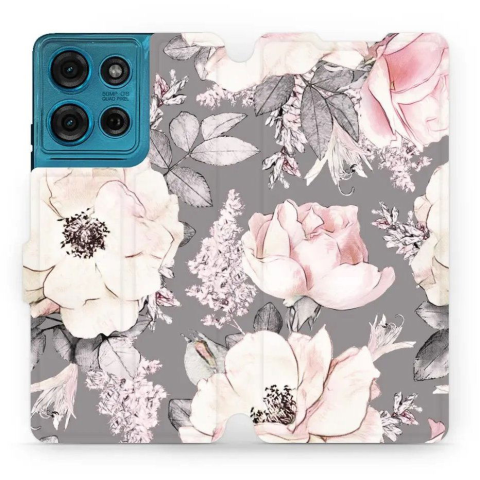 Mobiwear Motorola Moto G75 5G flip tok - virágok (5906511906372)