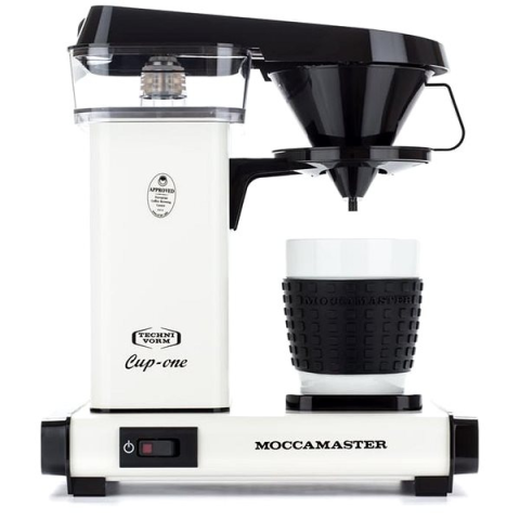 Filteres kávéfőző - elektromos, szabadon álló, otthonra, 1090 W teljesítmény, tartály űrtartalma 0,33 l, egy csésze kávé készítéséhez, papír szűrő, ital készítése egy gombnyomással, Anti-Drip rendszer és automatikus kikapcsolás, a felszerelés része víztartály, mérete 26 × 30 × 17 cm (Sz×Ma×Mé), víztartály kapacitása 0,33 l, tömege 2 kg Moccamaster Cup-one filteres kávéfőzőCream árnyalatHa szereted a friss, filteres kávét, és egy igazán jó minős
