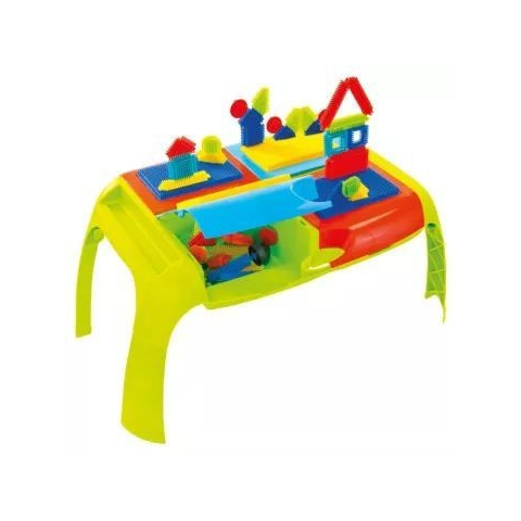 Egy összecsukható asztalka, ami a tüskés építmények alapja lehet!A tüskés építőjáték generációk óta ismert és közkedvelt a gyerekek körében. Az építőelemeken apró, tompa tüskék helyezkednek el nagyon sűrűn egymás mellett, így az egyes elemek egymásba kapaszkodva tudnak összekapcsolódni.A Bloko 52 darabos építőjáték szettjének élénk színű elemeiből a kicsik bármit felépíthetnek, méghozzá nem is akárhogy! Egy többféle színű panelekkel felszere