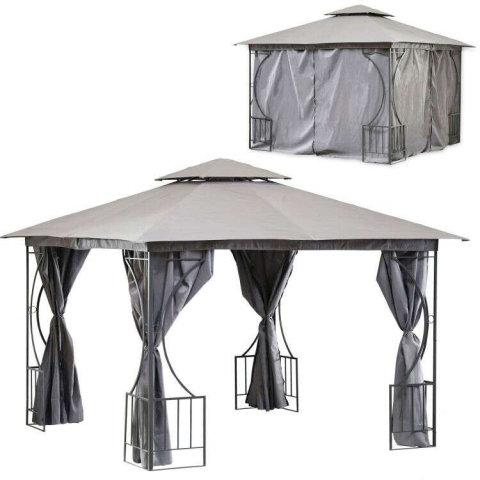 1 kép ModernHome dekoratív Kerti Pavilon oldalfalakkal 3x4m - szürke