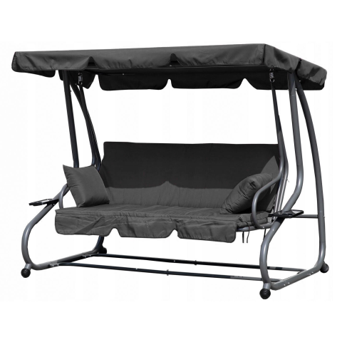 1 kép ModernHome Kabriós kerti hinta, 3 személyes, 2 az 1-ben, párnák, szürke, MultiGarden