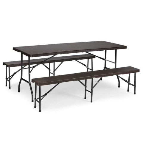 1 kép ModernHome összecsukható rattan hatású Sörpad garnitúra asztal 180cm + 2 pad - barna