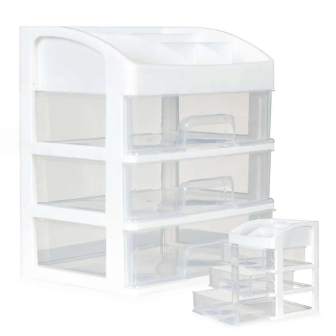 ModernHome Sminkrendező: 3 Fiókkal és Rekeszekkel - Tökéletes Smink Szervezéshez ✨ Ez a praktikus ModernHome sminkrendező segít rendszerezni a sminkjeidet és kozmetikai termékeidet, hogy minden a kezed ügyében legyen. A három áttetsző fiók és a fels...