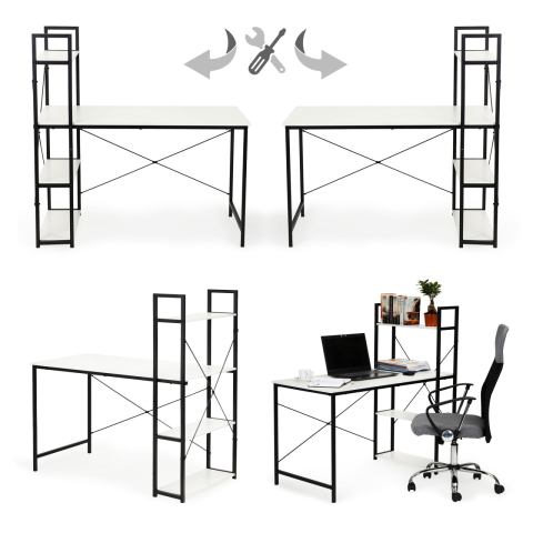1 kép ModernHome Számítógépes íróasztal irodai asztal + könyvespolc tetőtéri polcok