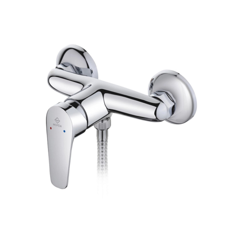 Egykaros, fali zuhanycsaptelep, zuhanyszettel, króm.