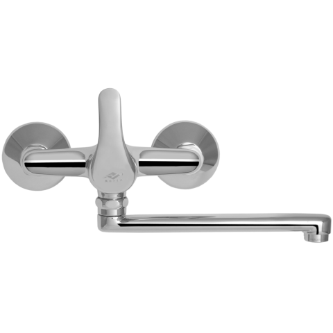 Mofém Junior egykaros mosogató csaptelep - sárgaréz - felületvédelem: nikkel-króm-bevonat - 200 mm-es, forgatható kifolyócső - vízkőmentes, Honeycomb perlátor -- M24x1 - 35 mm-es, kerámia vezérlőegység - fali kivitel