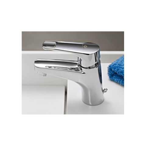 Mofém Junior Evo egykaros mosdó csaptelep - sárgaréz - felületvédelem: nikkel-króm-bevonat - vízkőmentes, Honeycomb perlátor -- M24x1 -- vízátbocsátás: 5 l/perc - 35 mm-es, kerámia vezérlőegység - bekötőcső: flexibilis, 3/8" - 5 év garancia - lánctartó szem nélkül