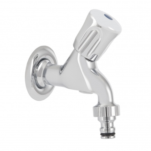 Mofém kifolyószelep 3/4 tömlővéggel közvetlen gyorscsatlakozással és légbeszívóval 162-0008-00 kerti öntőzőrendszerekhez, kerti csapokhoz, kültéri vizesblokkokhoz.