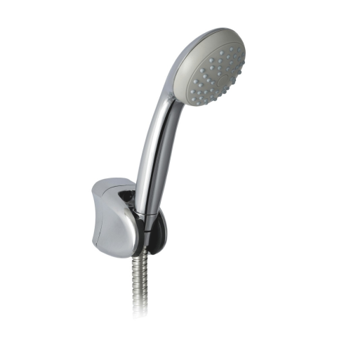 MOFÉM Basic zuhanyszett fix fali tartóval. Basic fali zuhanytartó szett Tartalmaz: Basic kézizuhany, 1 funkció: Eső, Ø70mm Megerősített fém gégecső 150cm