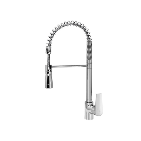 Mofém Trend Plus álló mosogató csaptelep, rozsdamentes acél flexibilis kifolyócsővel. Különleges megjelenésű magas ellenállású flexibilis rugóval. A zuhanyfej kétfunkciós és kihúzható, váltható zuhany és normál módok között. MOFÉM Trend Plus álló egyka