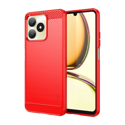1 kép MOFI szilikon telefonvédő (közepesen ütésálló, légpárnás sarok, szálcsiszolt, karbon minta) PIROS Realme C53