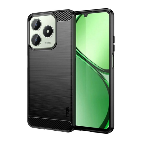 1 kép MOFI szilikon telefonvédő (ütésállóság, légpárnás sarok, szálcsiszolt, karbon minta) FEKETE Realme C61 4G